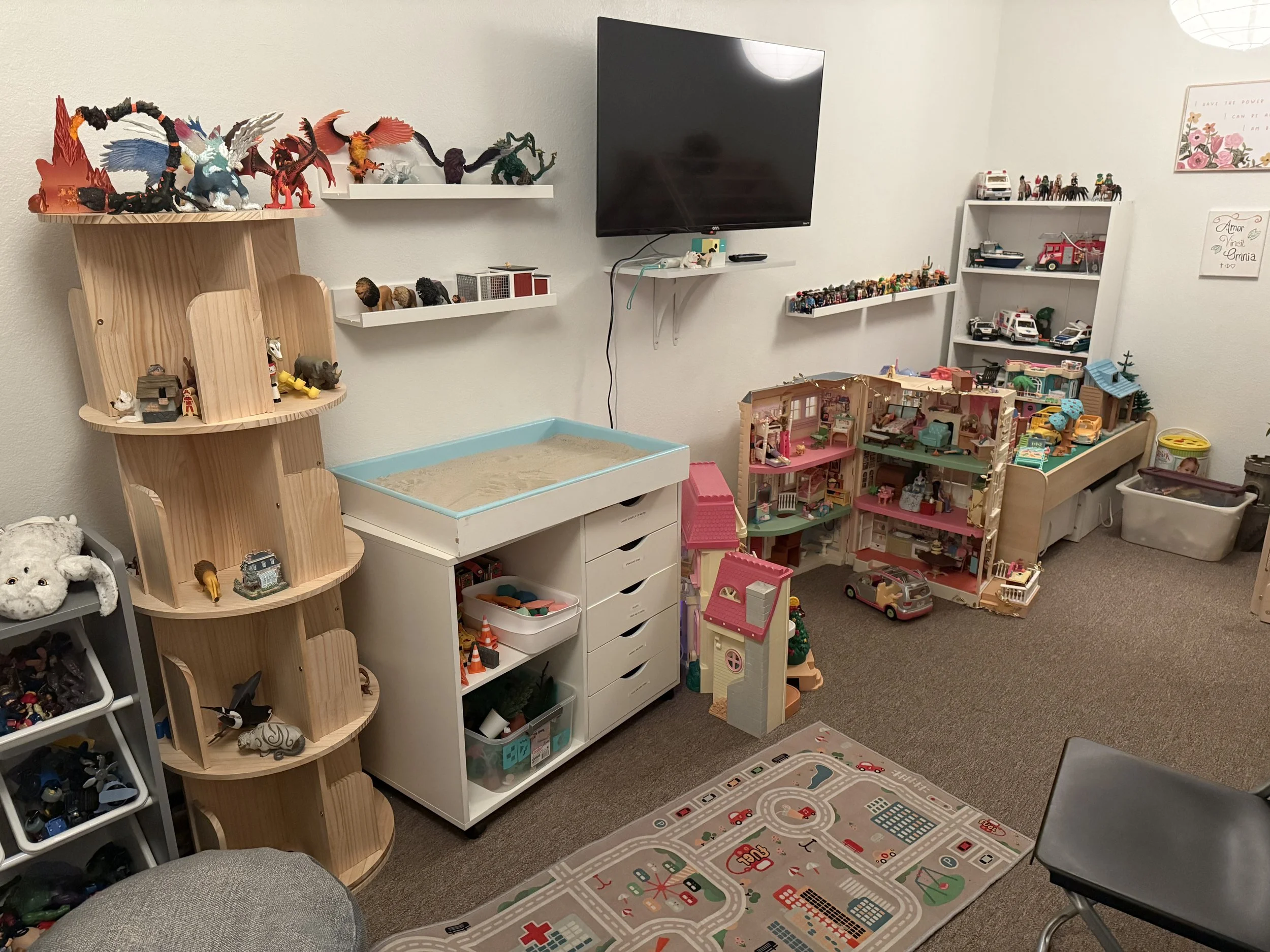 Sam uses play therapy techniques, in addition to traditional talk therapy, to support her strength-based style.
